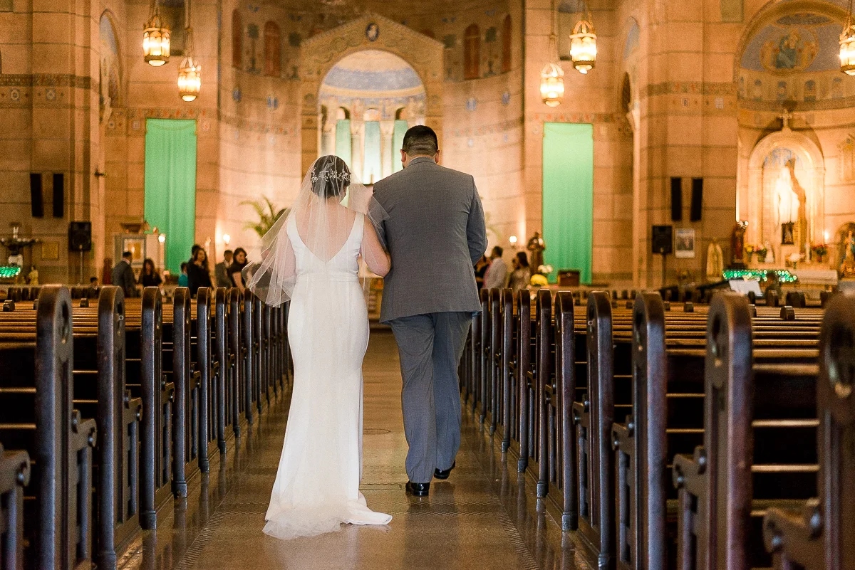 Catherine and Roy’s wedding ceremony was held at the Shrine of the Sacred Heart in DC. This church was built in the late 1800s and has so much history! Every corner has beautiful and meaningful adornments. The ceremony began with Roy walking down the aisle with his mom, then followed by his best man. Catherine walked down the aisle with her man of honor and brother. Though the bride and groom themselves did not cry, their family members teared up as they said their vows to each other and were so happy for them!